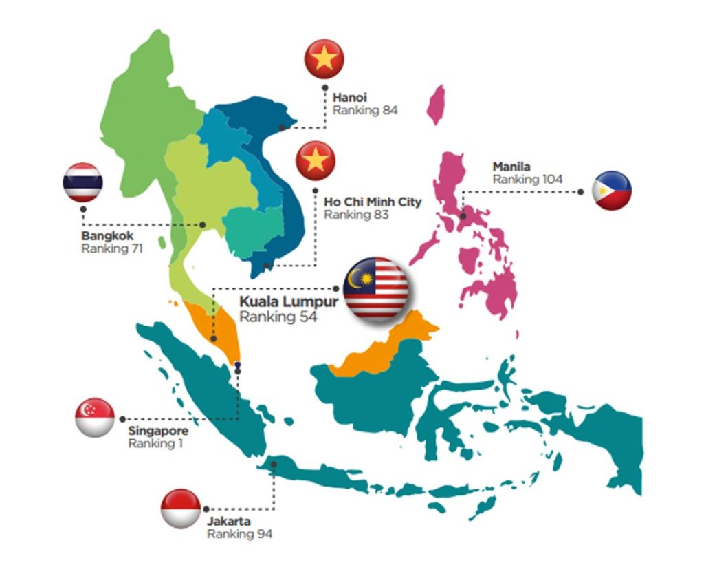 Figure 1-1 shows that Kuala Lumpur ranked 54 on the Global Smart City Index 2020 which ranks cities based on economic and technological data. Kuala Lumpur is the second city after Singapore among all major ASEAN cities in this ranking.