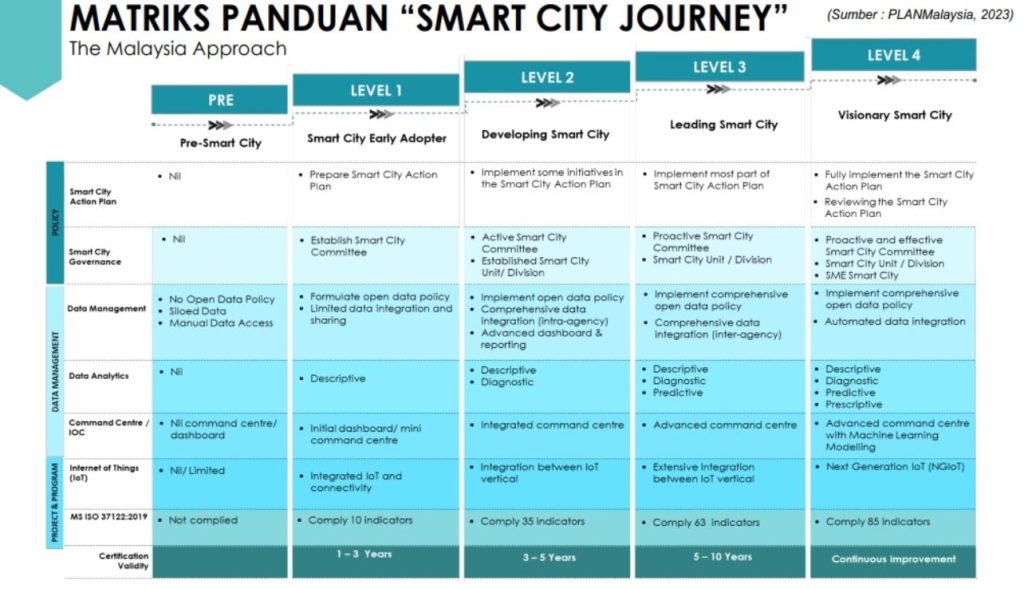 For Malaysia to continue its development, it is essential to attain Smart City status. PLANMalaysia has outlined a Smart City maturity model for local councils (PBTs) to embrace and seek government endorsement.