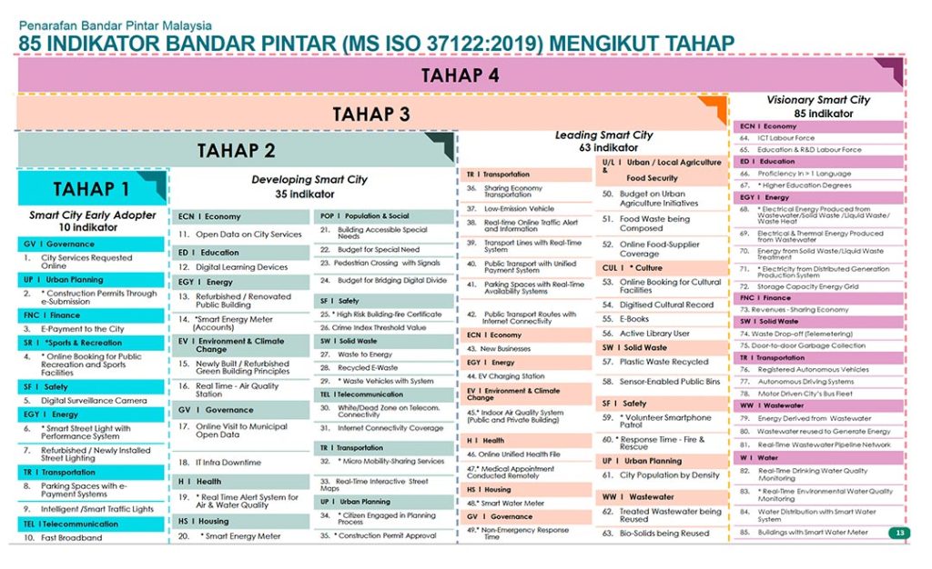 In Malaysia, achieving full Smart City status involves a total of 85 indicators, each spanning four distinct levels with their respective ratings.